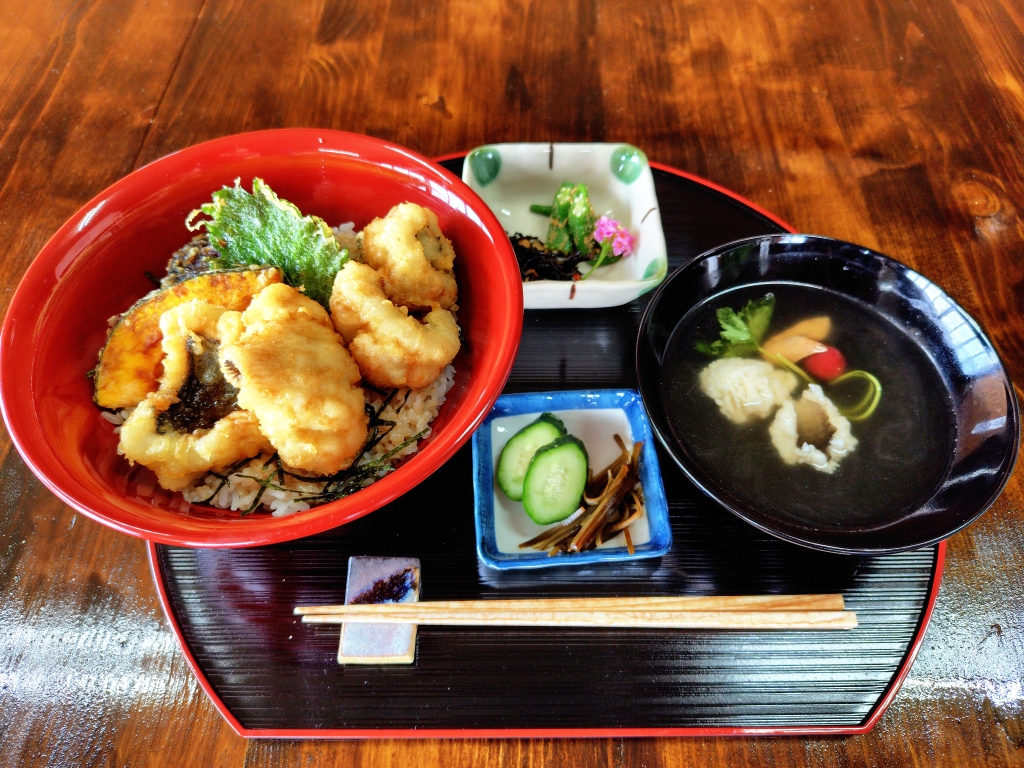 ◯天ぷら盛り合わせ、南蛮漬け、お吸い物、漬物
